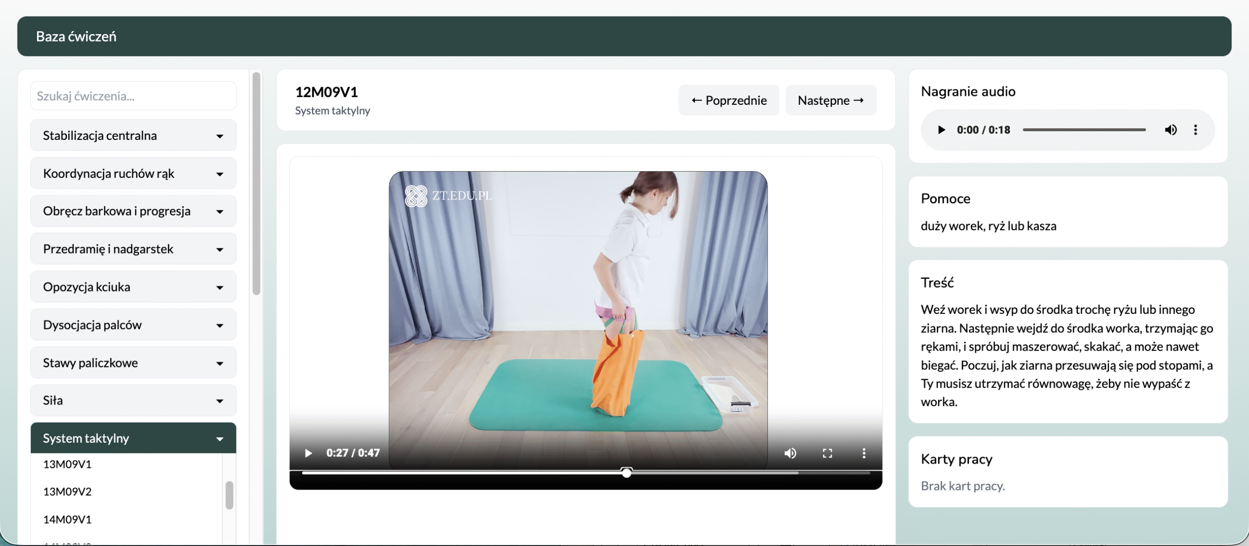 - Trening – możliwość wykupienia indywidualnego planu treningowego (12 lub 36 lekcji na około 3 do 9 miesiący), tworzonego automatycznie na podstawie diagnozy, który zawiera lekcje z instrukcjami wideo lub kartami pracy i opisami zadań – do pracy w gabinecie i w domu,